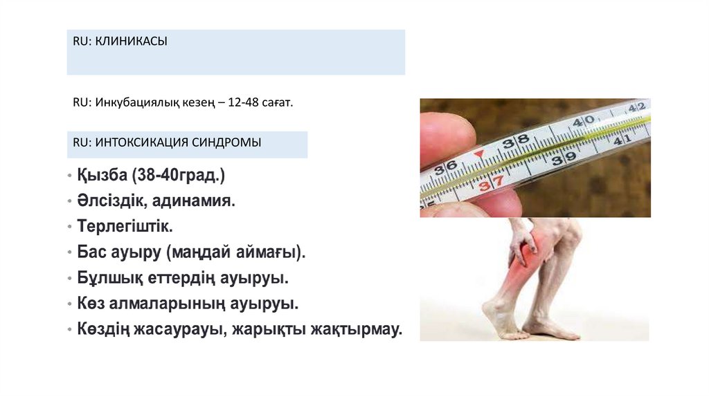 RU: КЛИНИКАСЫRU: Инкубациялық кезең – 12-48 сағат.