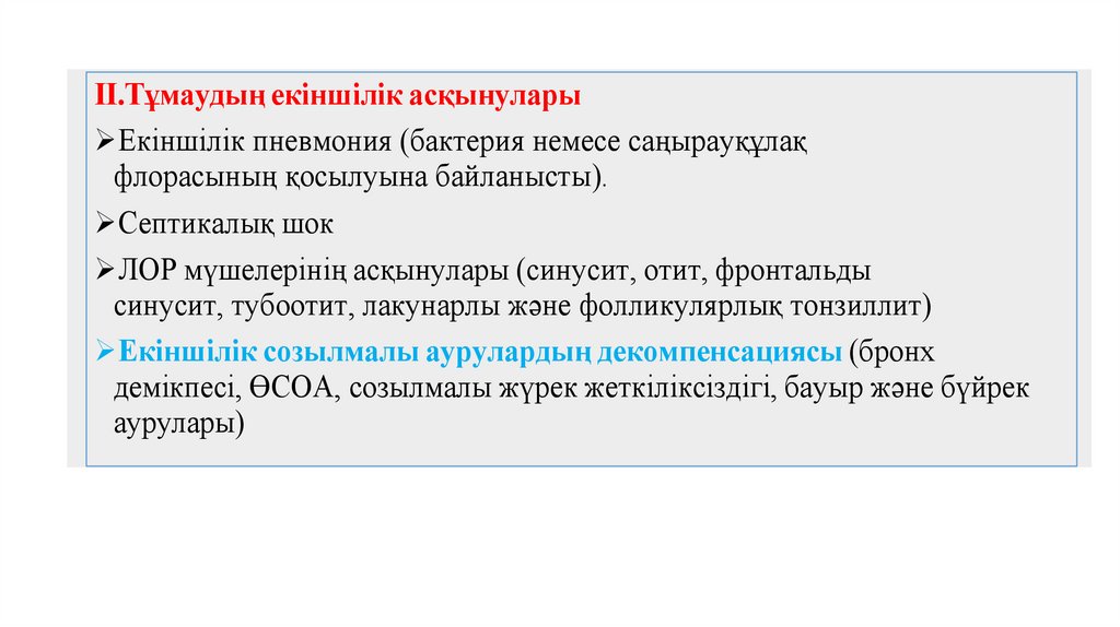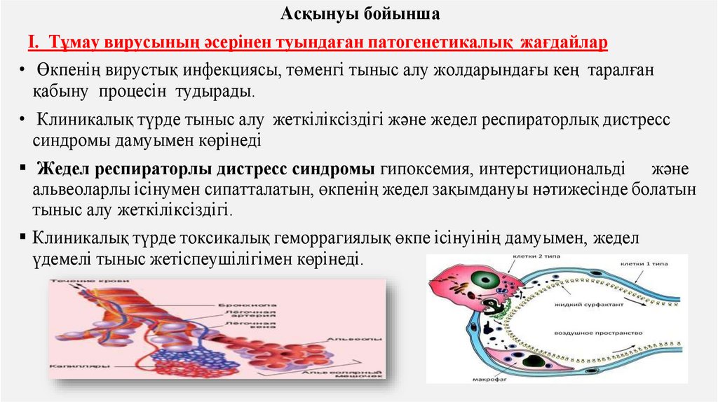 Асқынуы бойыншаІ. Тұмау вирусының әсерінен туындаған патогенетикалық жағдайлар