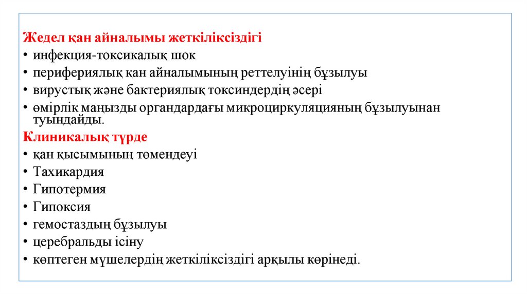 геморрагиялық синдром және қайталама бактериялық асқынулардың қосылуымен