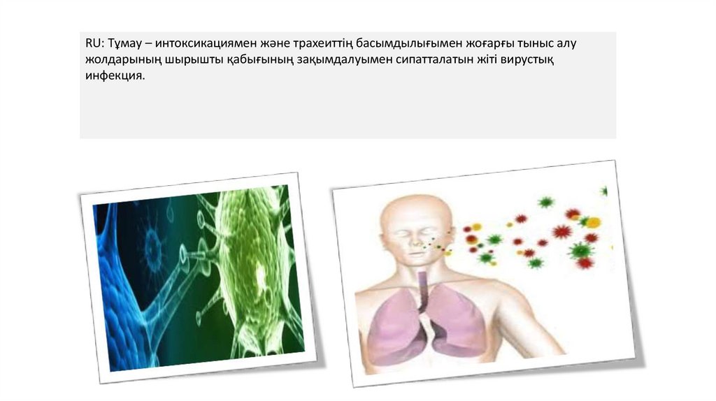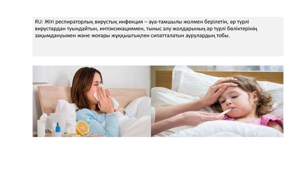 RU: Жіті респираторлық вирустық инфекция – ауа-тамшылы жолмен берілетін, әр түрлівирустардан туындайтын, интоксикациямен, тыныс алу жолдарының әр түрлі бөліктерінің