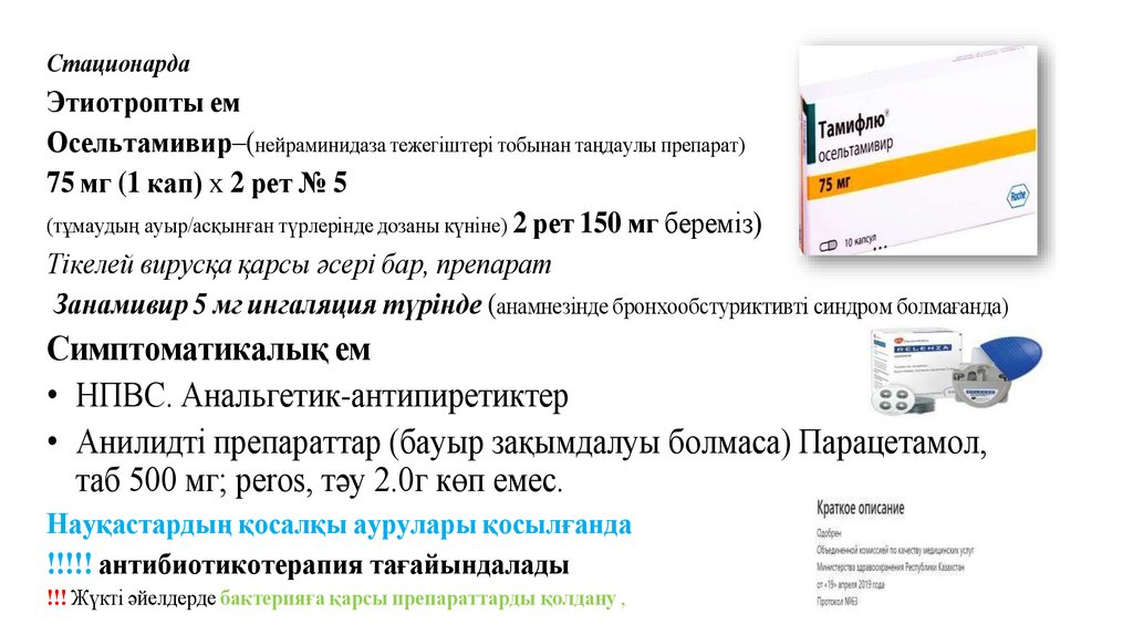 Осельтамивир–(нейраминидаза тежегіштері тобынан таңдаулы препарат)