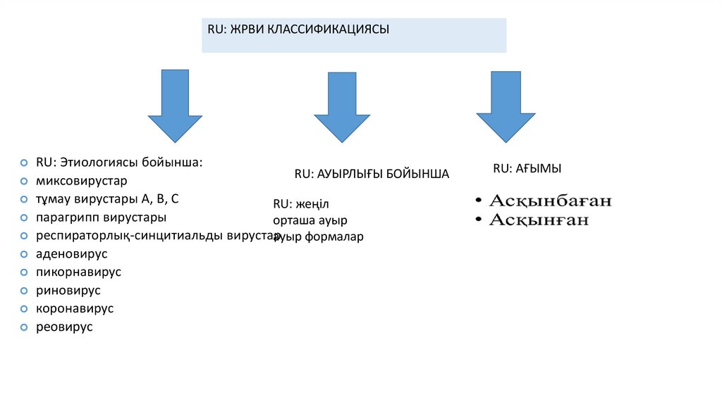 RU: ЖРВИ КЛАССИФИКАЦИЯСЫRU: Этиологиясы бойынша: