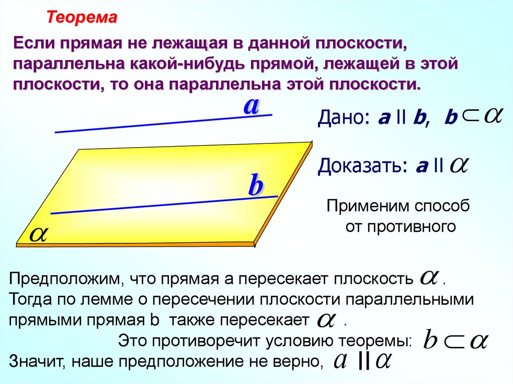 ТеоремаЕсли прямая не лежащая в данной плоскости,