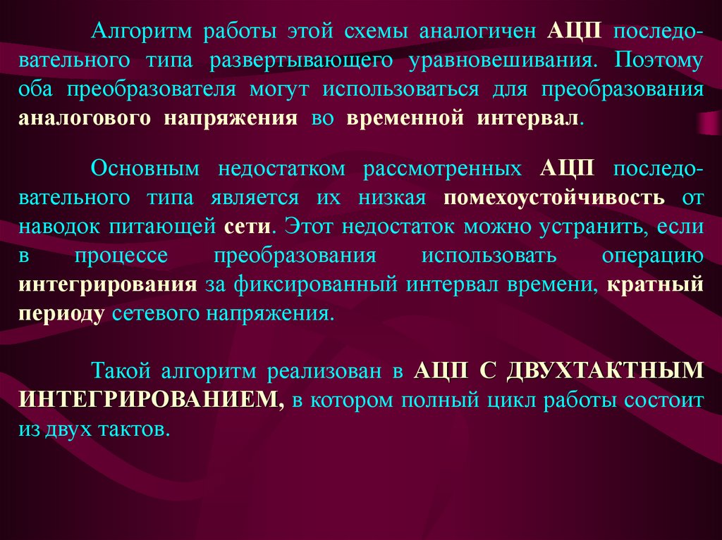 Основным недостатком рассмотренных АЦП последовательного типа является их низкая помехоустойчивость от