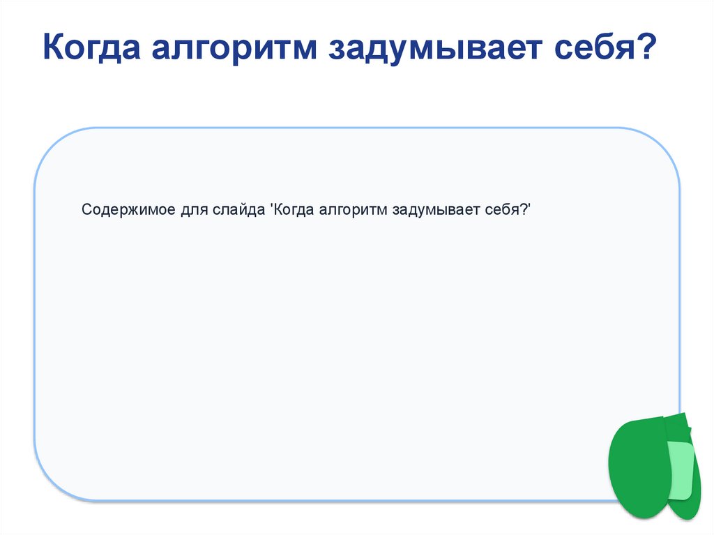Когда алгоритм задумывает себя?Содержимое для слайда 'Когда алгоритм задумывает себя?'