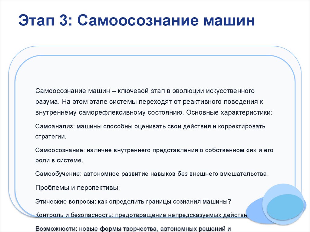 Этап 3: Самоосознание машинСамоосознание машин – ключевой этап в эволюции искусственного