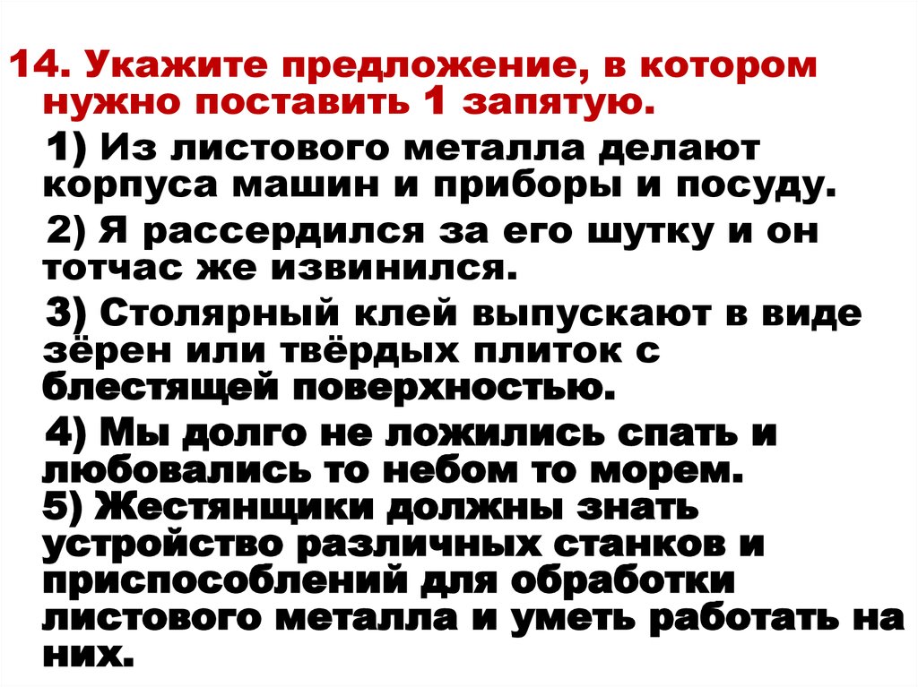 14. Укажите предложение, в которомнужно поставить 1 запятую.