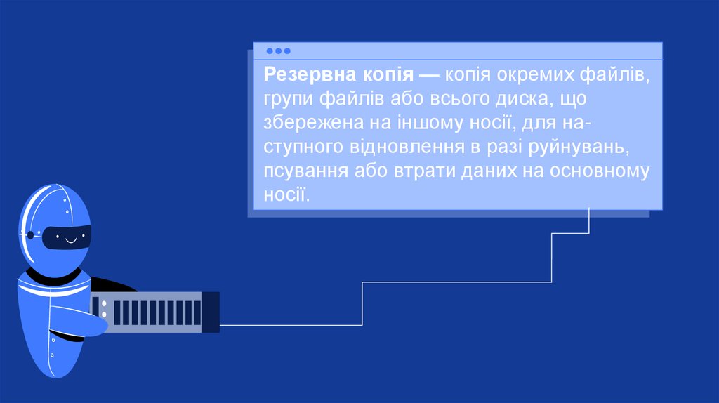Резервна копія — копія окремих файлів,групи файлів або всього диска, що