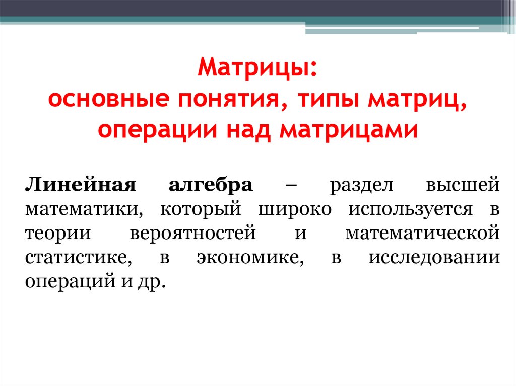 1. Матрицы: основные понятия, типы матриц, операции над матрицами