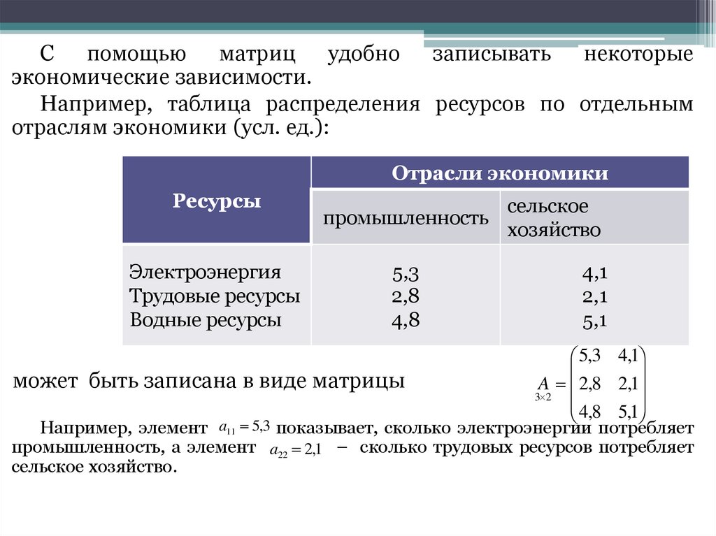 С помощью матриц удобно записывать некоторыеэкономические зависимости.