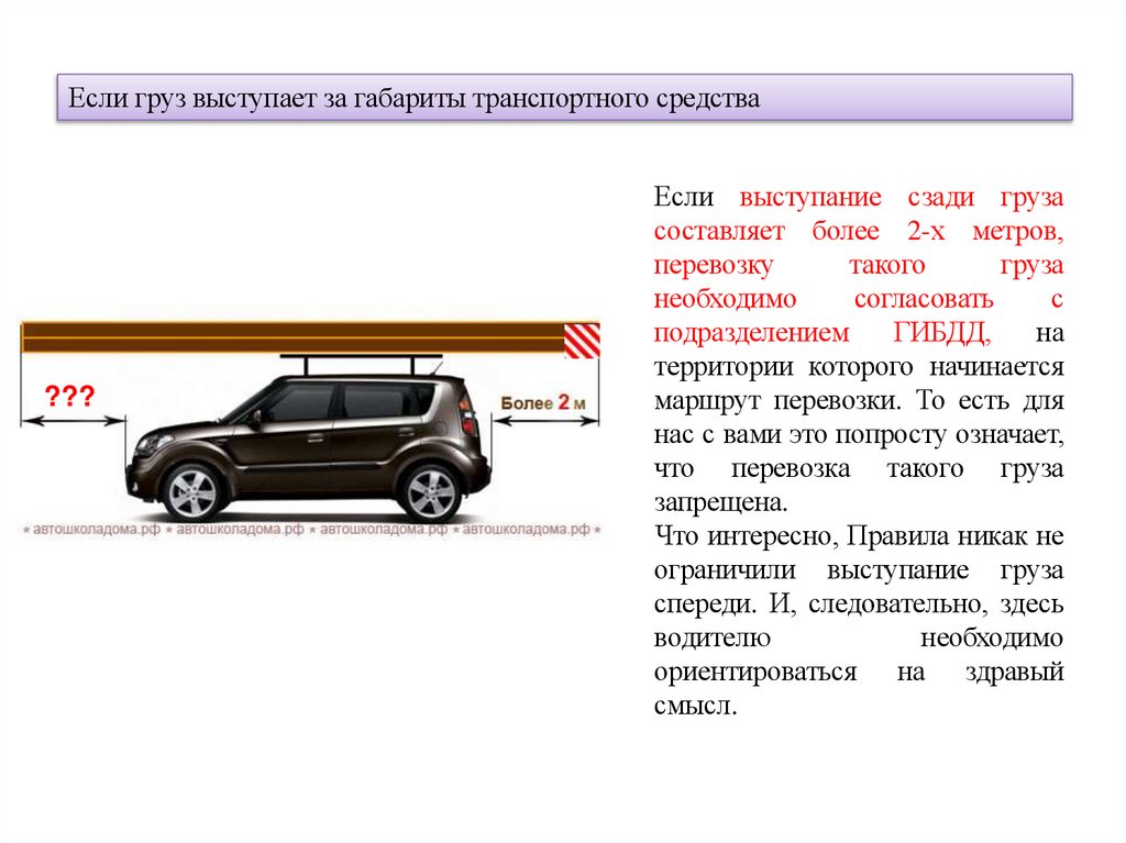 Если груз выступает за габариты транспортного средстваЕсли выступание груза от края