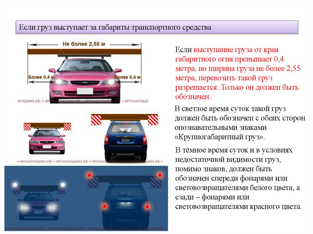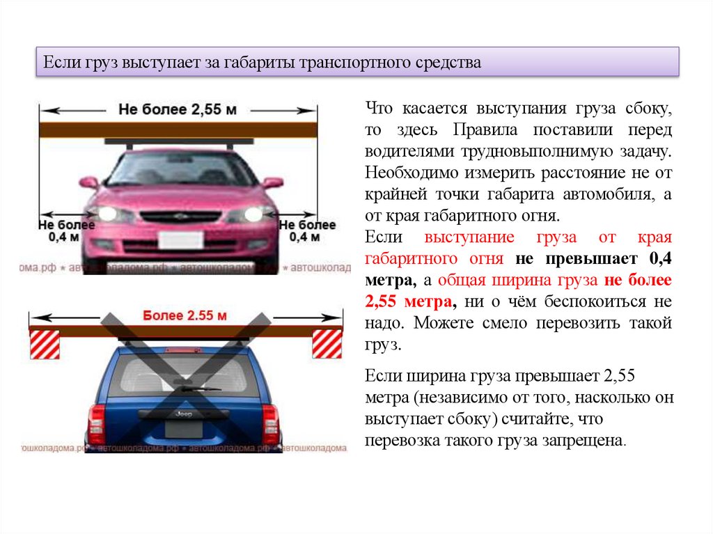 Если груз выступает за габариты транспортного средстваЧто касается выступания груза сбоку,