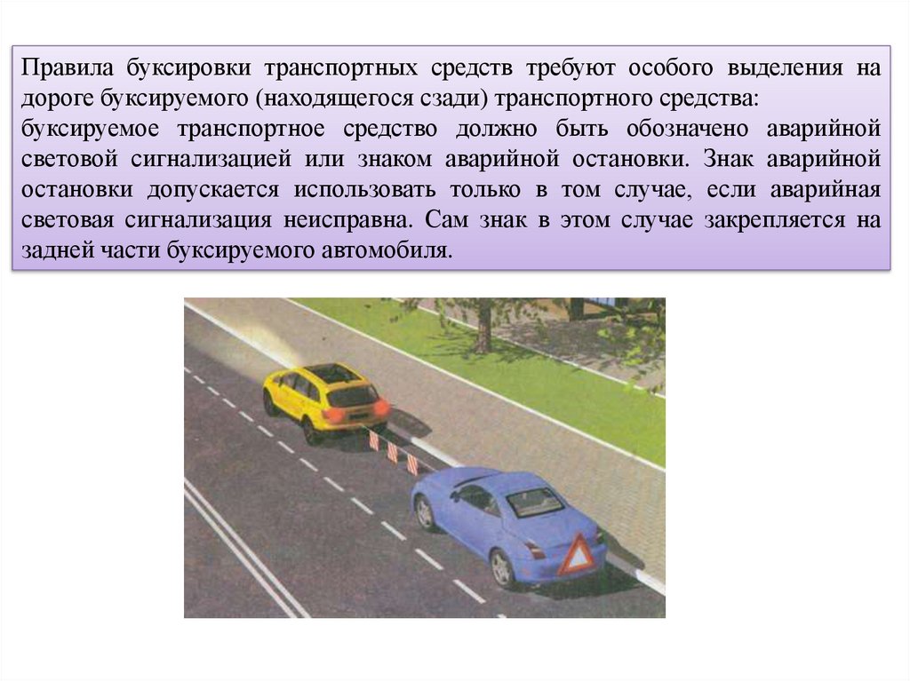 Правила буксировки транспортных средств требуют особого выделения надороге буксируемого (находящегося сзади) транспортного средства: