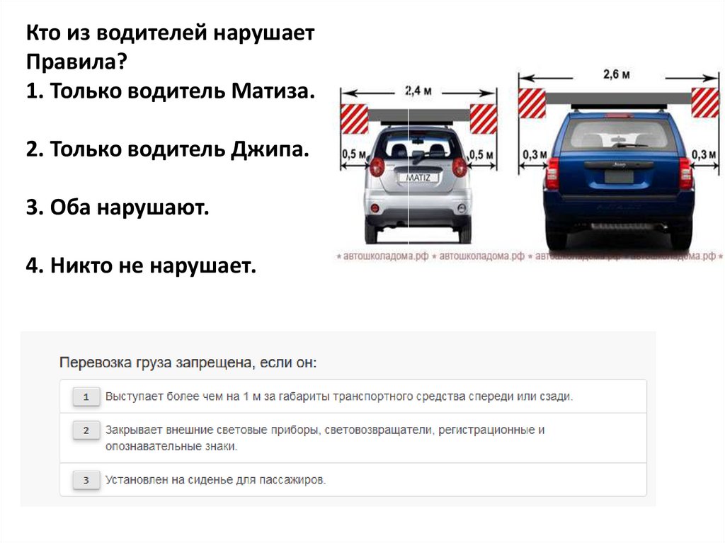 Если груз выступает за габариты транспортного средстваЕсли груз выступает за