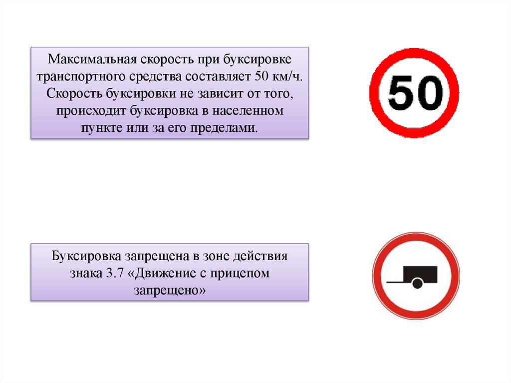 Максимальная скорость при буксировкетранспортного средства составляет 50 км/ч.