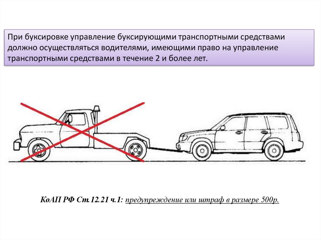 При буксировке управление буксирующими транспортными средствамидолжно осуществляться водителями, имеющими право на управление