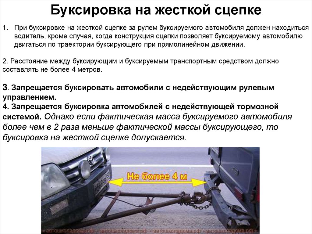 массы буксирующего, то буксировка на жесткой сцепке допускается.