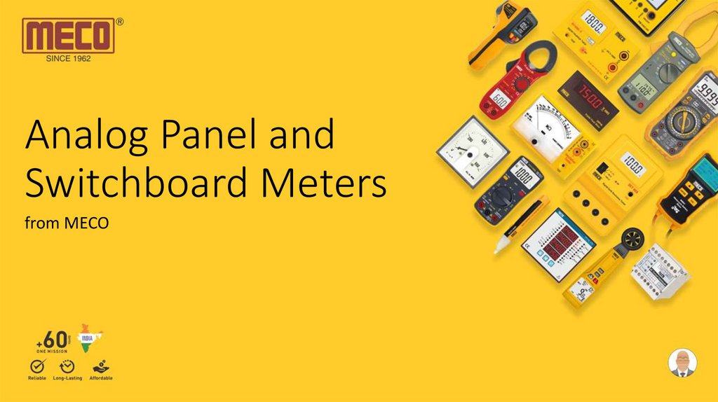 • Meco Analog panel and switchboard meters use a dial, pointer, and agraduated scale to visually display electrical measurements like
