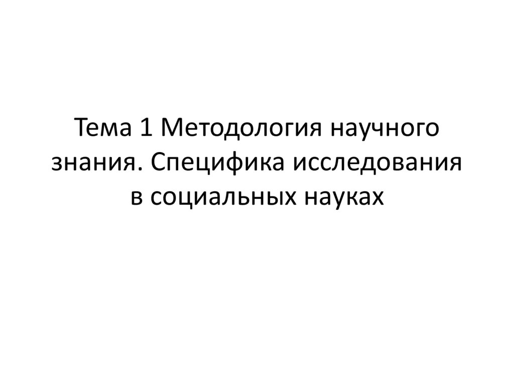 1. Тема 1 Методология научного знания. Специфика исследования в социальных науках