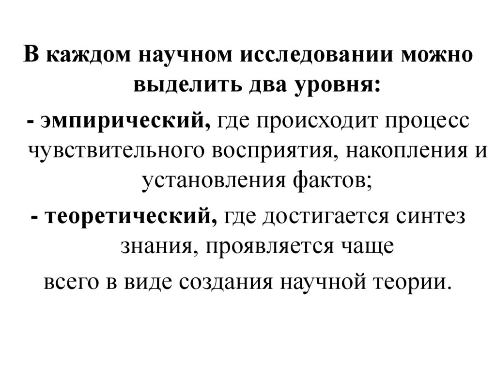 - теоретический, где достигается синтез