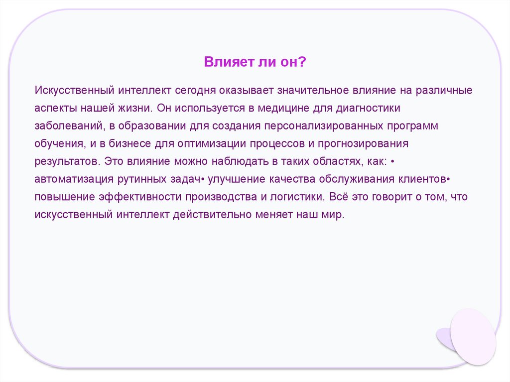 Влияет ли он?Искусственный интеллект сегодня оказывает значительное влияние на различные