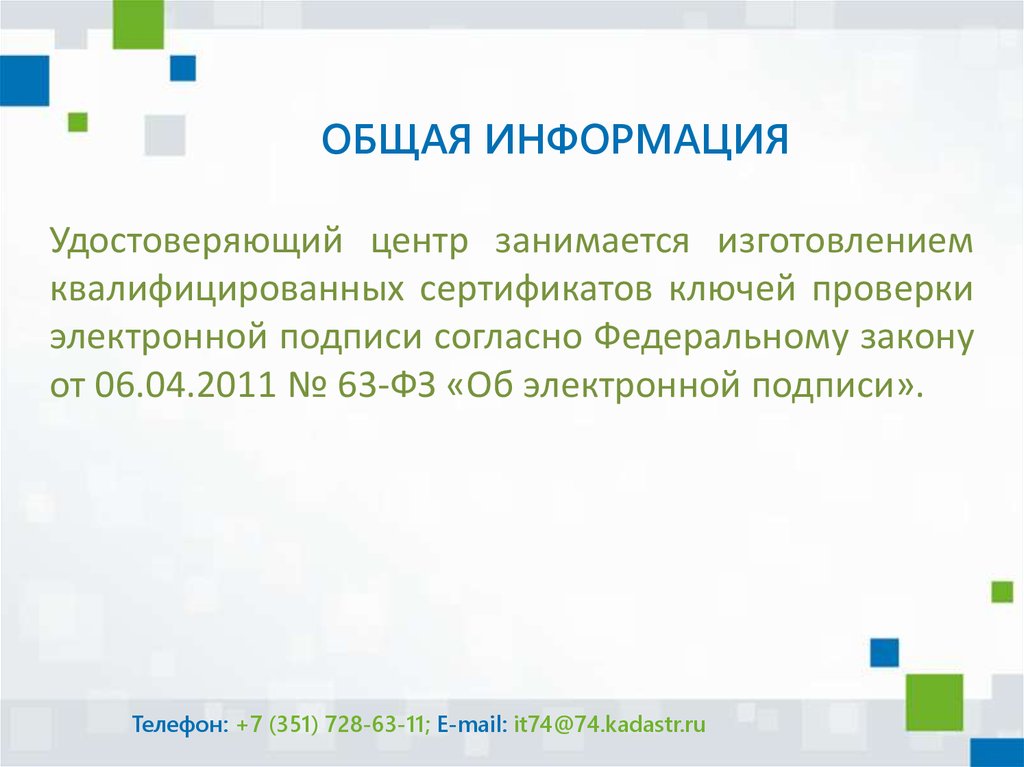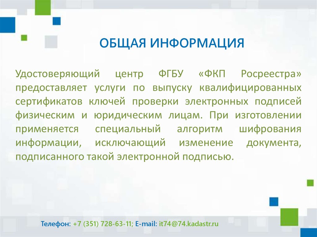 ОБЩАЯ ИНФОРМАЦИЯУдостоверяющий центр ФГБУ «ФКП Росреестра»