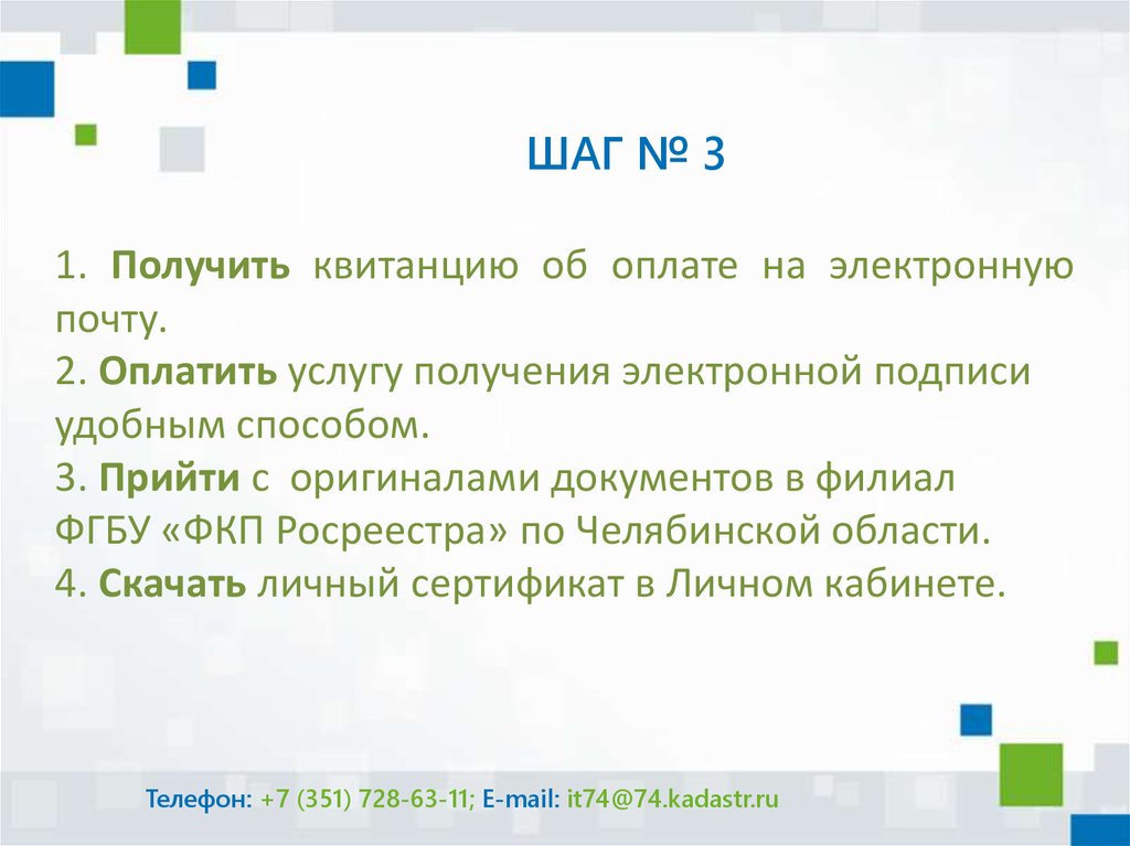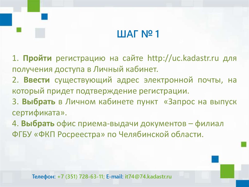 Телефон: +7 (351) 728-63-11; E-mail: it74@74.kadastr.ru
