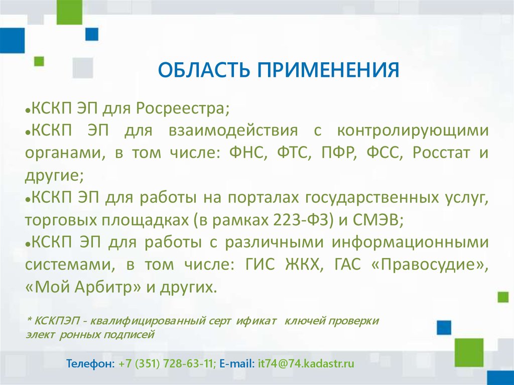 ОБЛАСТЬ ПРИМЕНЕНИЯКСКП ЭП для Росреестра;