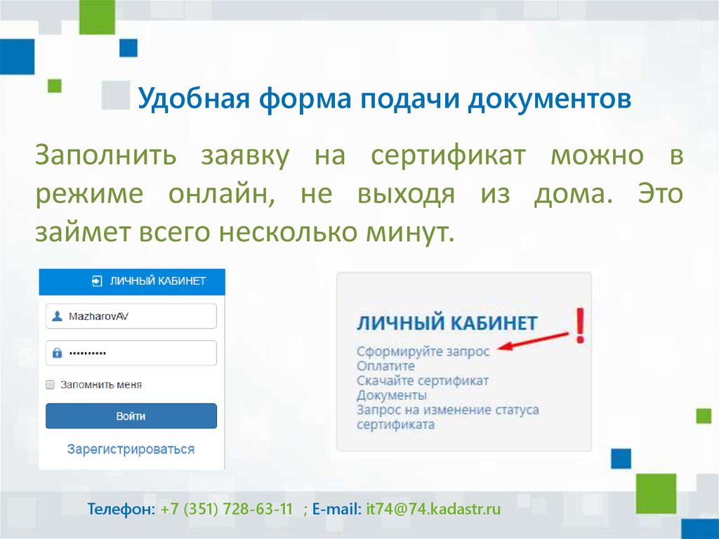 Удобная форма подачи документовЗаполнить заявку на сертификат можно в