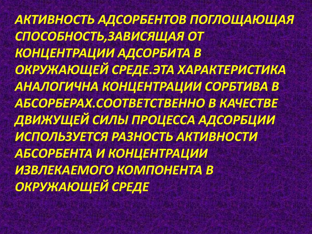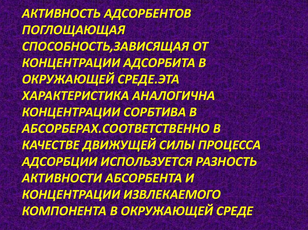 АКТИВНОСТЬ АДСОРБЕНТОВ ПОГЛОЩАЮЩАЯСПОСОБНОСТЬ,ЗАВИСЯЩАЯ ОТ