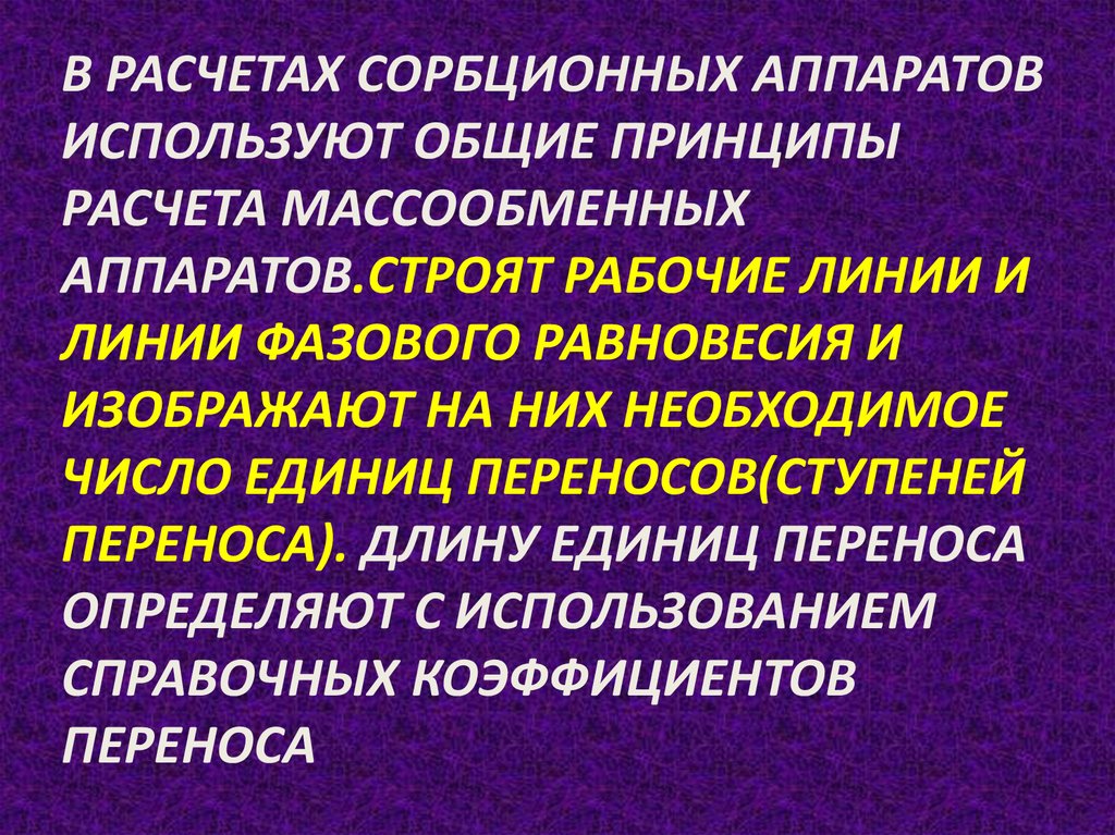 В РАСЧЕТАХ СОРБЦИОННЫХ АППАРАТОВИСПОЛЬЗУЮТ ОБЩИЕ ПРИНЦИПЫ
