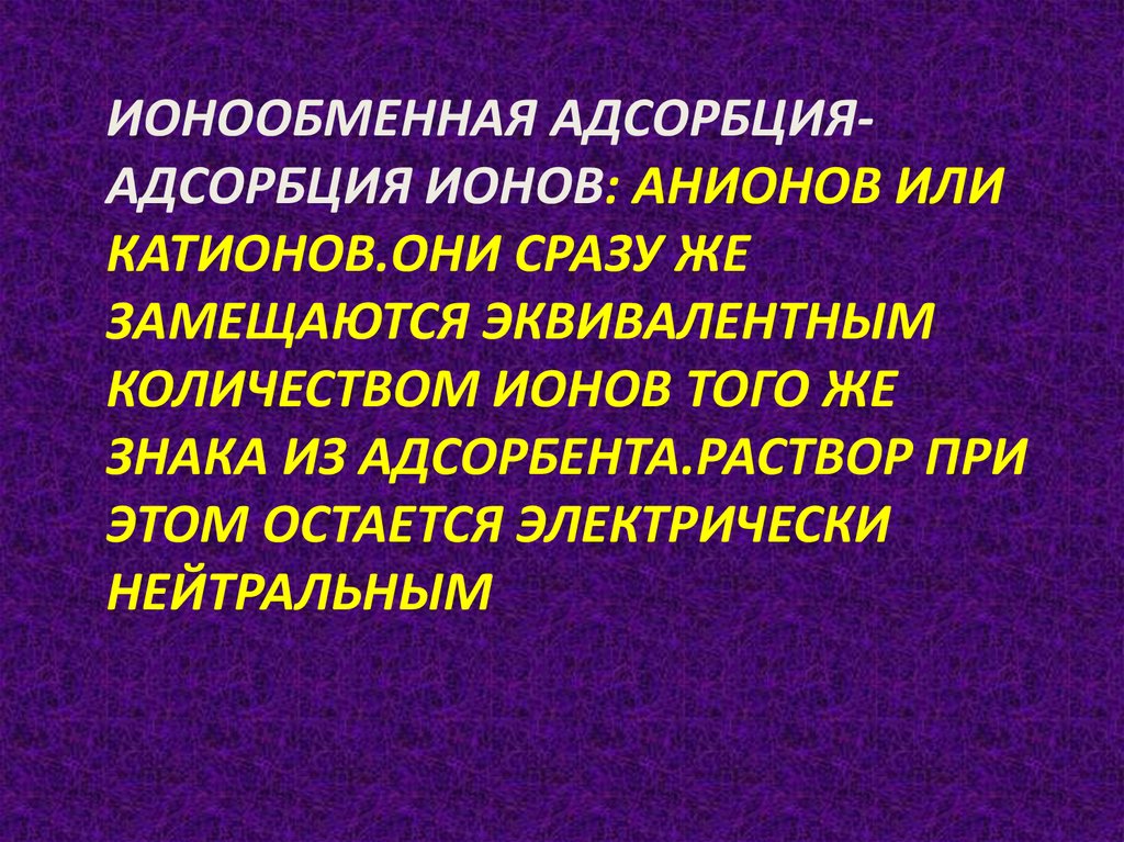 ИОНООБМЕННАЯ АДСОРБЦИЯАДСОРБЦИЯ ИОНОВ: АНИОНОВ ИЛИКАТИОНОВ.ОНИ СРАЗУ ЖЕ