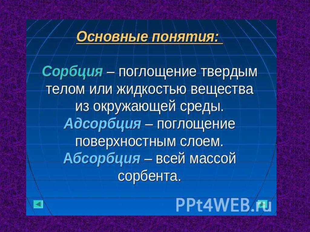 ПОНЯТИЕ СОРБЦИЯДВИЖУЩАЯ СИЛА АБСОРБЦИИ