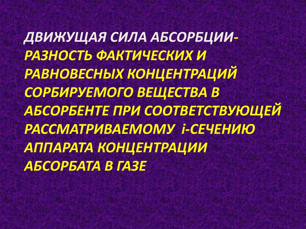 ДВИЖУЩАЯ СИЛА АБСОРБЦИИРАЗНОСТЬ ФАКТИЧЕСКИХ ИРАВНОВЕСНЫХ КОНЦЕНТРАЦИЙ