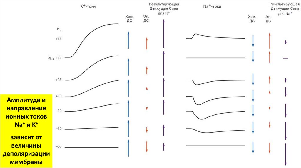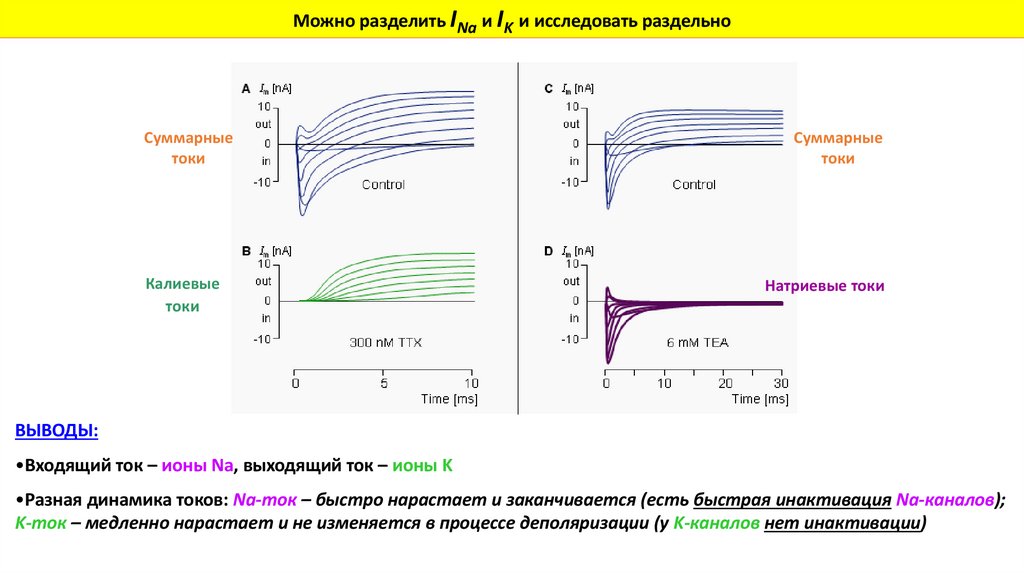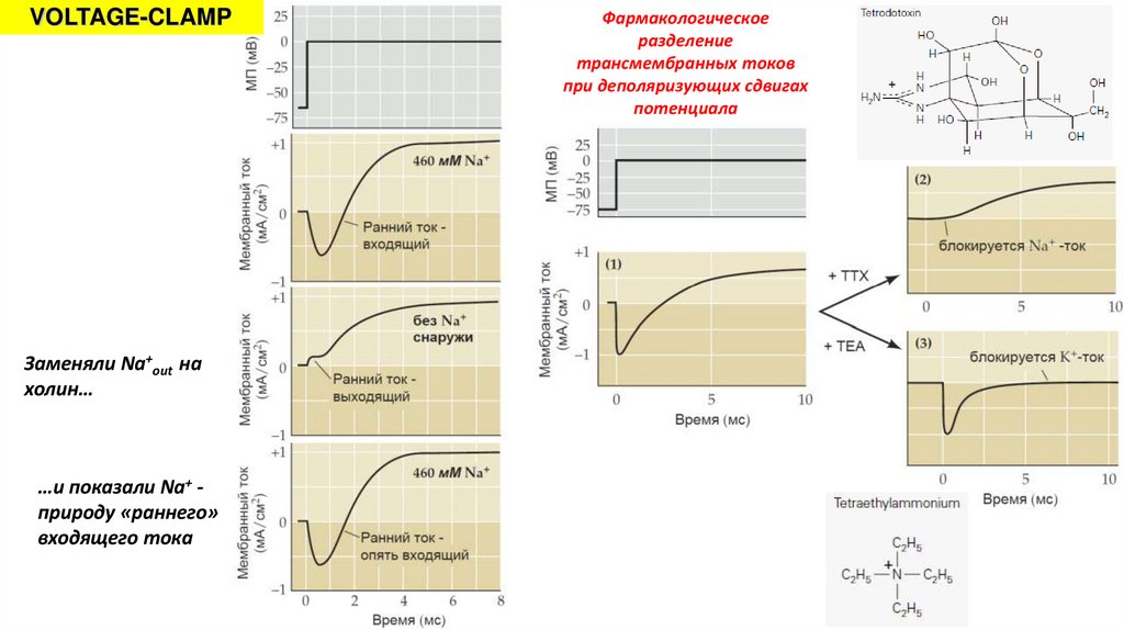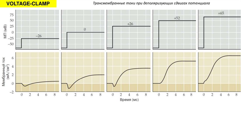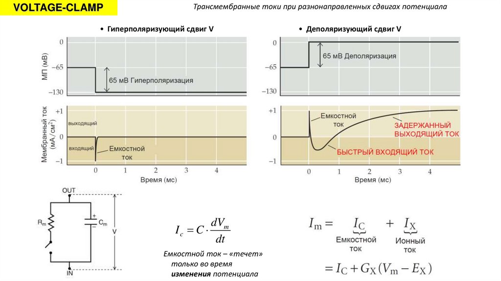 VOLTAGE-CLAMPТрансмембранные токи при разнонаправленных сдвигах потенциала