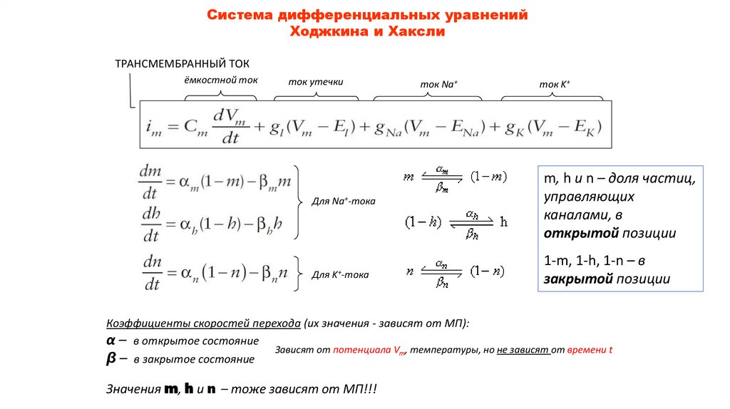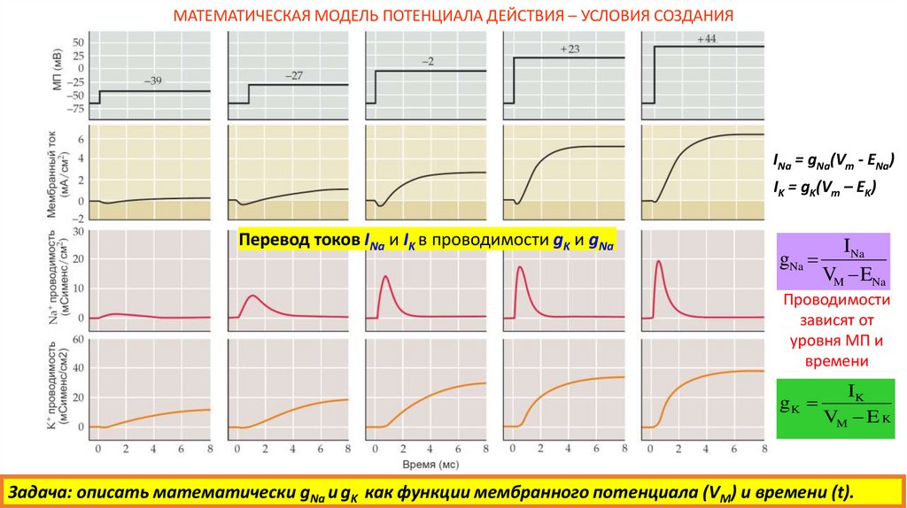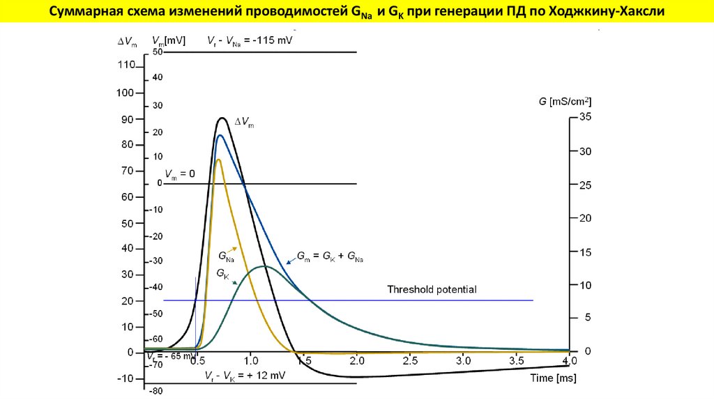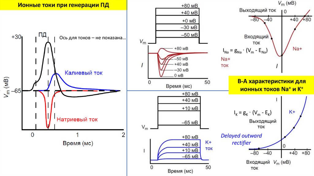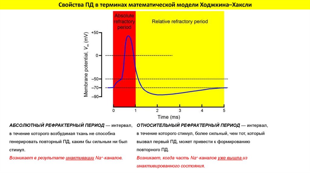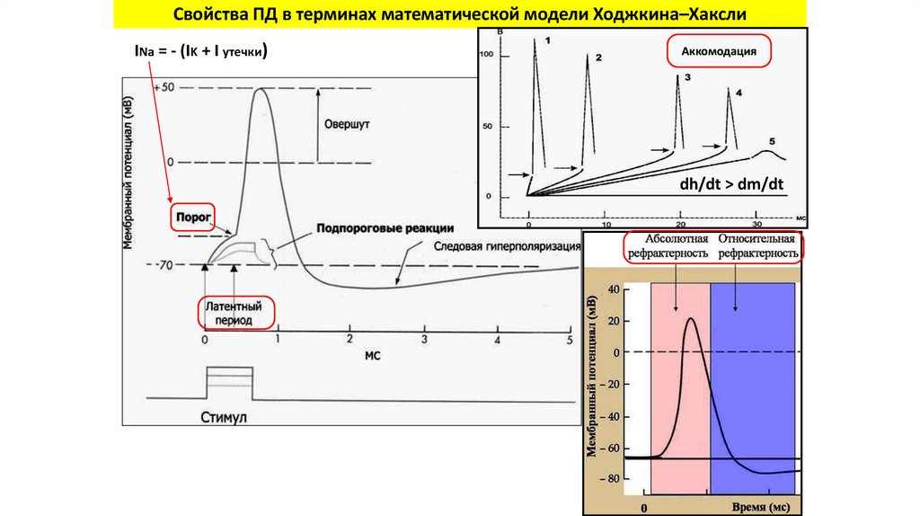 Свойства ПД в терминах математической модели Ходжкина–ХакслиINa = - (IK + I утечки)