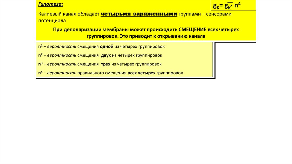 Вероятность (Р) открытия Кv-канала – варьирует от 0 до 1