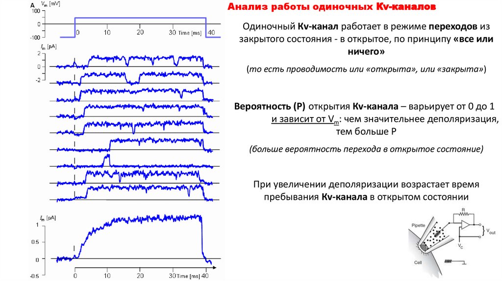 Анализ работы одиночных Кv-каналовОдиночный Кv-канал работает в режиме переходов из