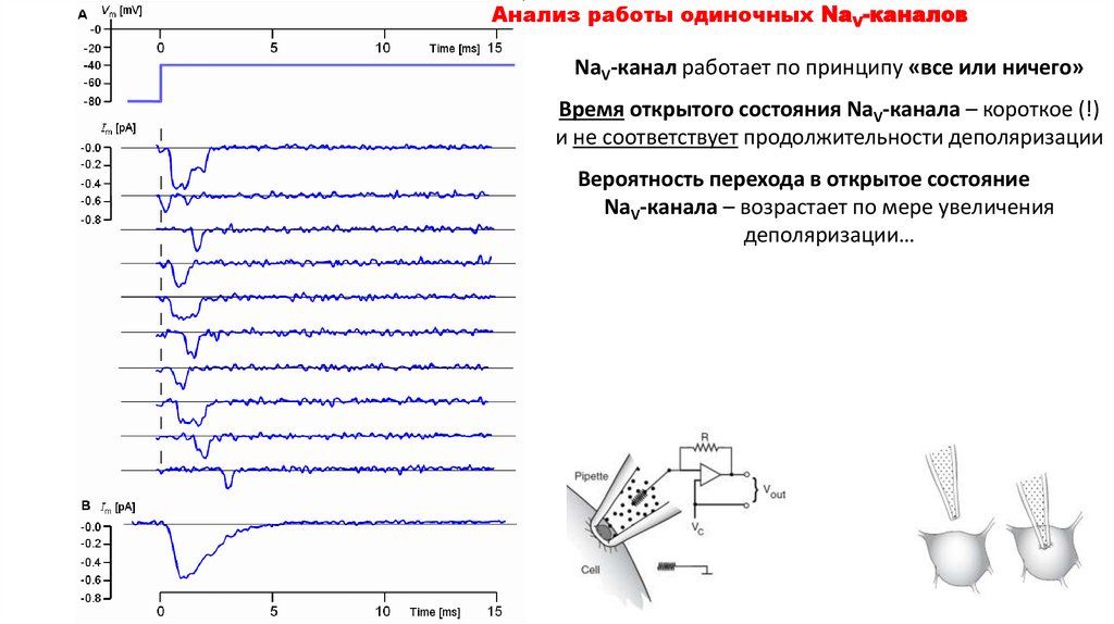 Анализ работы одиночных NaV-каналовNaV-канал работает по принципу «все или ничего»