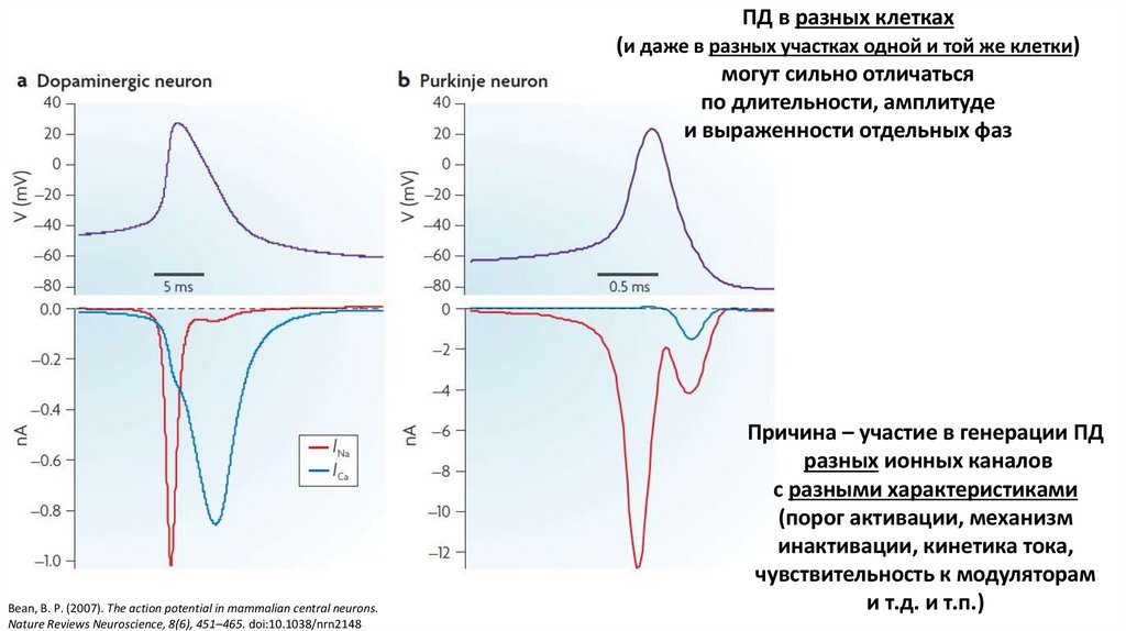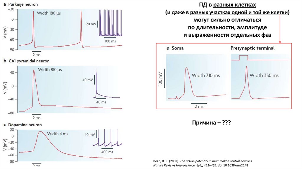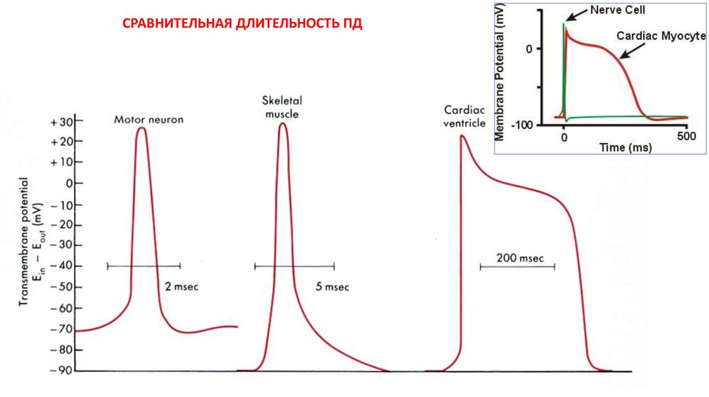 ПД в разных клетках(и даже в разных участках одной и той же клетки)