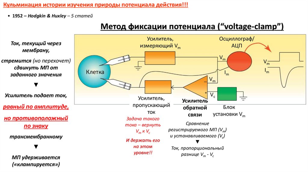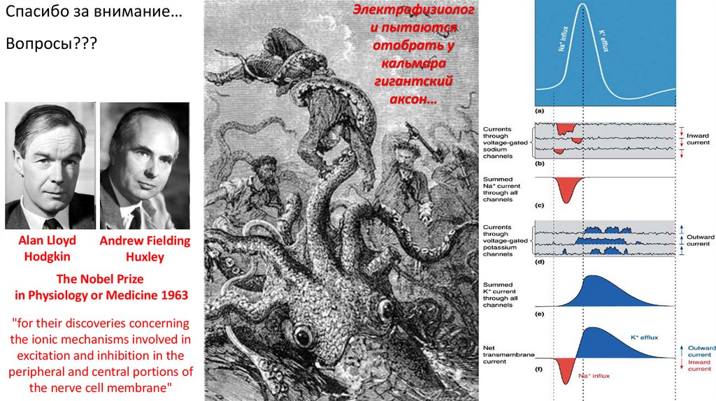 Кульминация истории изучения природы потенциала действия!!!• 1952 – Hodgkin & Huxley – 5 статей