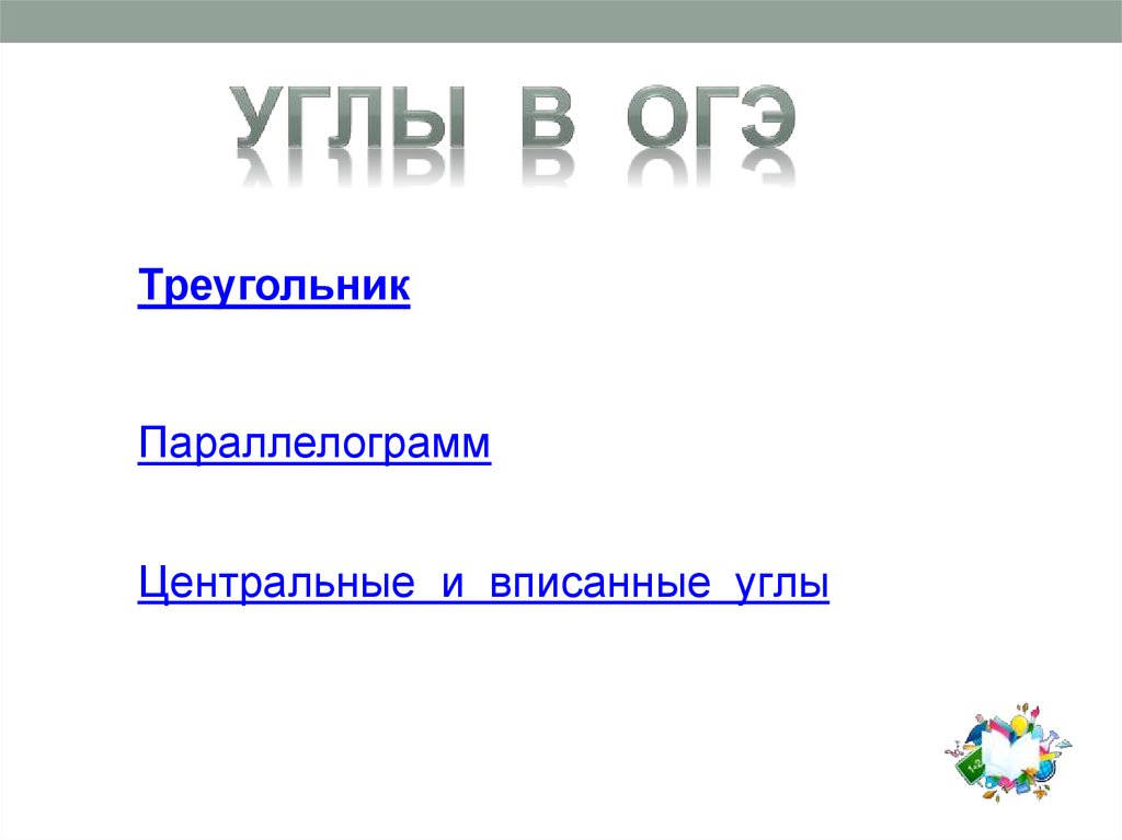 Треугольник. Параллелограмм. Центральные и вписанные углы