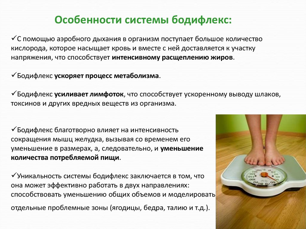 Особенности системы бодифлекс:С помощью аэробного дыхания в организм поступает большое количество
