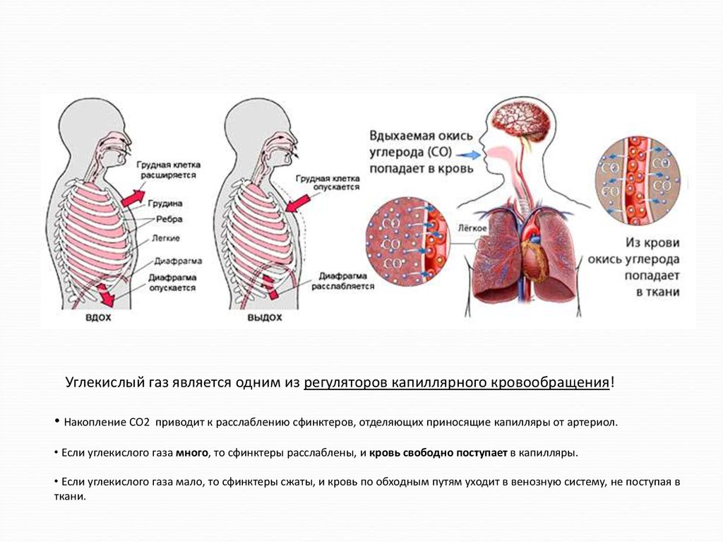 Углекислый газ является одним из регуляторов капиллярного кровообращения!• Накопление СО2