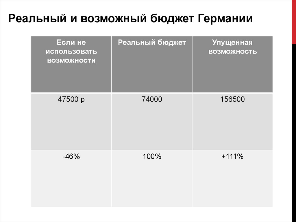Реальный и возможный бюджет ГерманииЕсли не