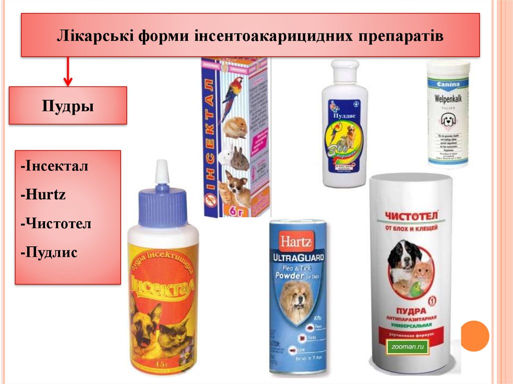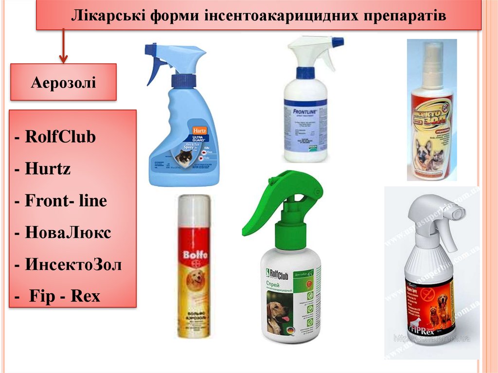 шампуні, пудри та аерозолі («Фронтлайн, Фіпрекс»,
