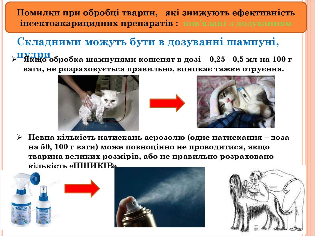 Помилки при обробці тварин, які знижують ефективністьінсектоакарицидних препаратів :