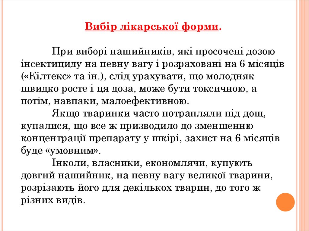 Вибір лікарської форми.При виборі нашийників, які просочені дозою