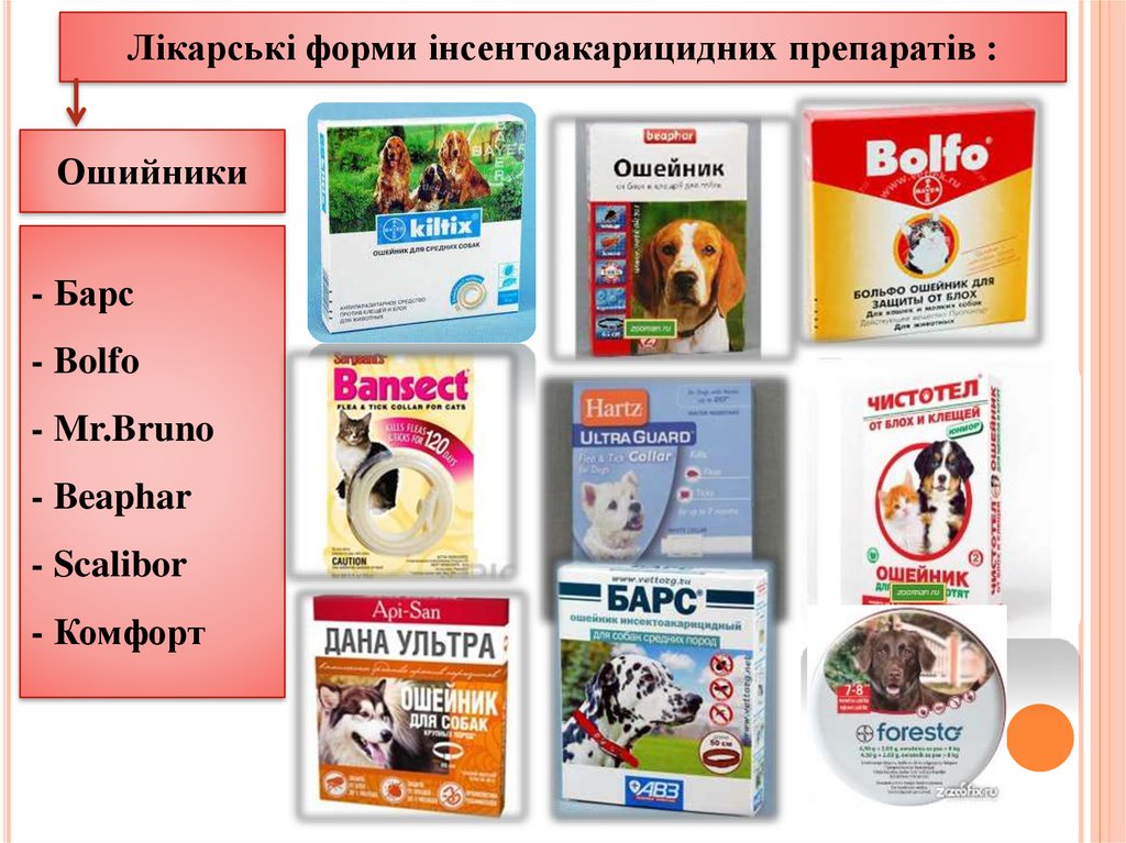Лікарські форми інсентоакарицидних препаратів :Ошийники