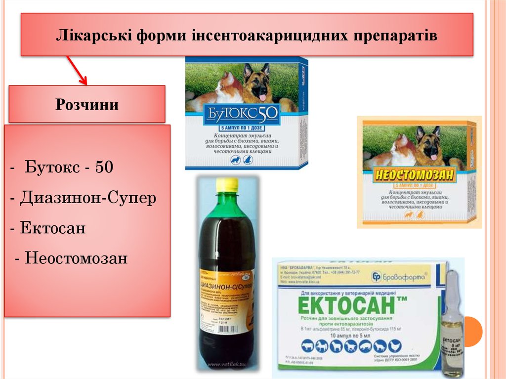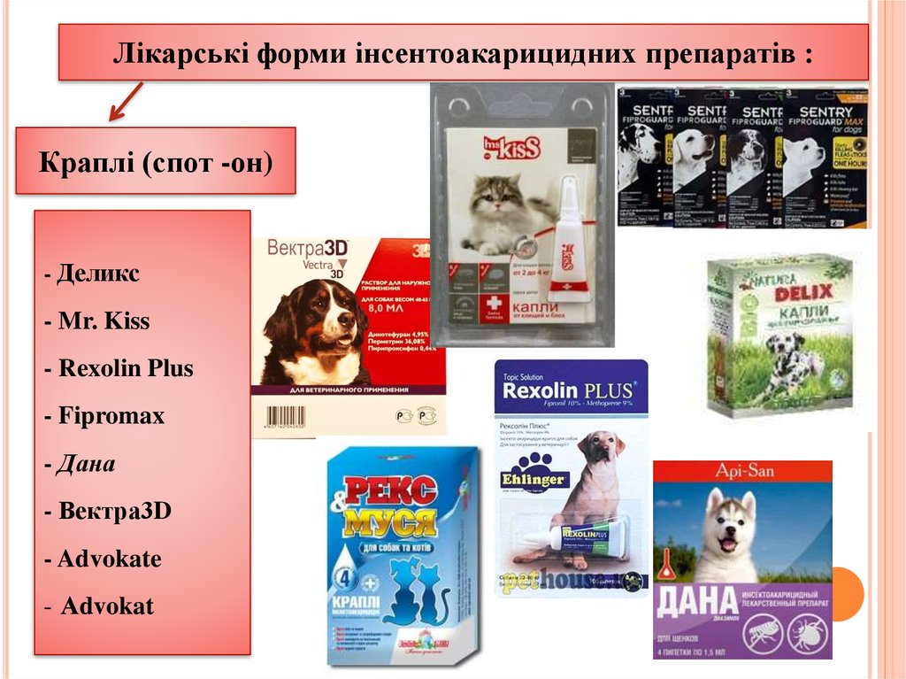 Лікарські форми інсентоакарицидних препаратів :Краплі (спот -он)